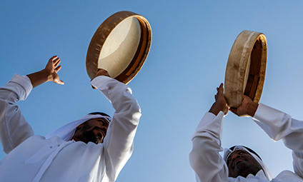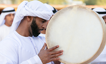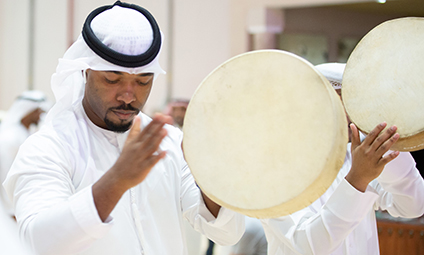تُعد العيالة من أكثر فنون الأداء الشعبية انتشاراً في دولة الإمارات العربية المتحدة ويُؤَدَّى هذا الفن الرجال والصبية الذين يحملون عِصي الخيزران، ويتحركون في انسجام مع إيقاع الطبول المنتظم.